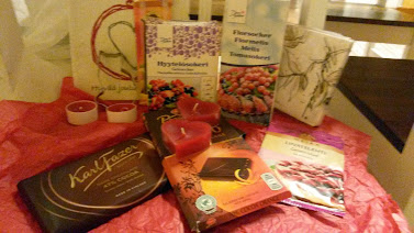 Kiitos, oi ihana ystäväni tosi runsaasta paketista. Selvästi huomaa, että se on tehty juuri minun makumieltymykseni huomioiden. Edes mieheni ei olisi osannut pakettia koota niin hyvin juuri sellaisista aineksista, mihin olen ihan hulluna. Paketti sisälsi:
